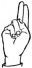 На ћирилици написано САША РАЛИЋ састоји се из 9 слова [?]. Исписано ћириличном једноручном азбуком за глувонеме: